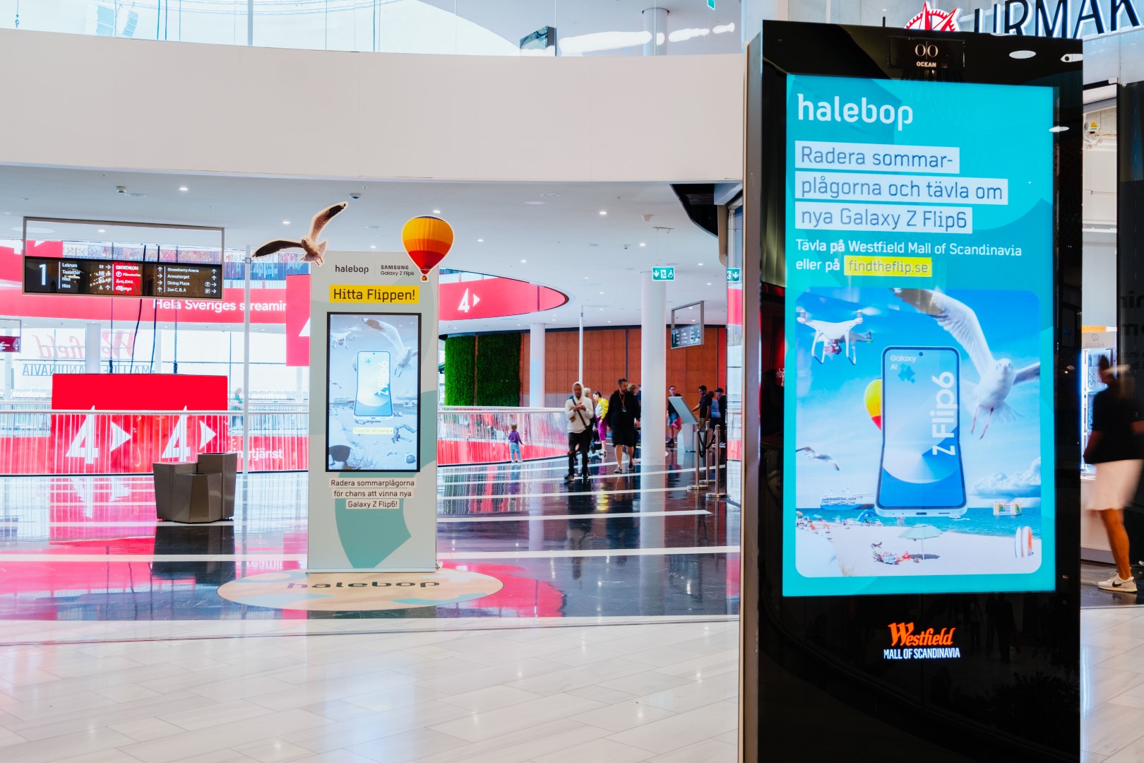 Visa större bild Halebop Mall Of Scandinavia 2024 På Uppdrag av Ocean Outdoor levererade HyrData en 55” pekskärm inbyggd i en inklädd BeMatrixkonstruktion för att marknadsföra Halebops kampanj i samarbete med Samsungs släpp av Galaxy Z Flip6. Albin Lindsmyr2024-08-19T11:54:47+02:00